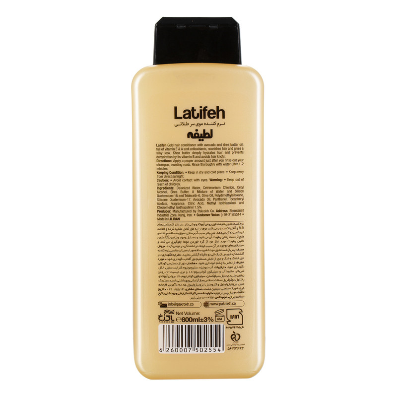 نرم کننده لطیفه به داخل مو نفوذ کرده و مواد کاتیونی موجود در آن موجب خنثی کردن بار منفی موها بر اثر شستشو با انواع شامپو می شود و موها راحت تر شانه می شوند.